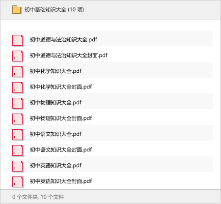 本次分享的资源是《初中基础知识大全》合集,里面包含了语文、英语、物理、化学和道德与法治五门核心学科的精华知识汇总!✨ 每科都有独立的知识大全PDF和精美封面,内容系统又清晰,全是干货。特别适合孩子用来期末总复习、查漏补缺,或者提前预习构建知识框架,能实实在在地帮孩子把基础打牢。有需要的朋友直接存就好啦!