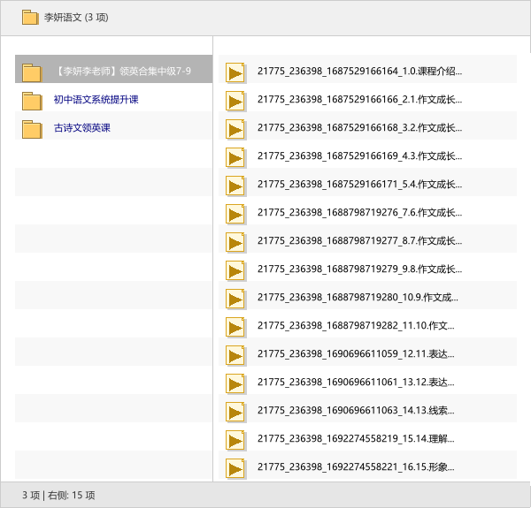 本次分享的资源是【李妍语文】系列,包含初中语文系统提升课、古诗文领英课及7-9年级领英合集。
