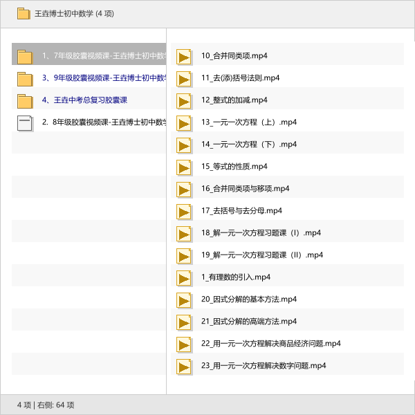 本次分享的资源是《王垚博士初中数学》全套胶囊视频课,覆盖七到九年级同步课程及中考总复习。